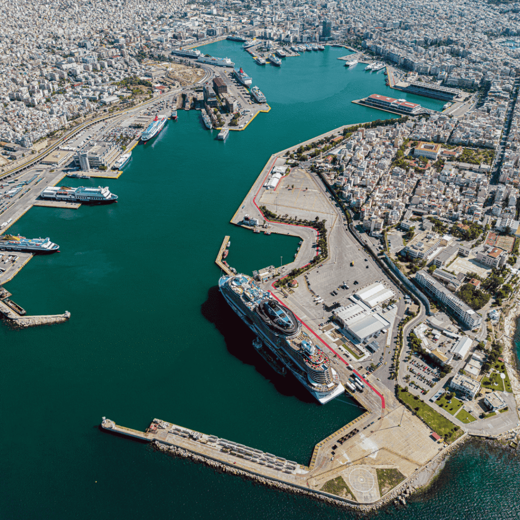 Cảng Piraeus là cảng biển lớn nhất Hy Lạp và thuộc nhóm những cảng container sôi động nhất châu Âu, với sản lượng thông quan khoảng 5–5,5 triệu TEU mỗi năm. Nhờ vị trí chiến lược trên tuyến vận tải Á – Âu, Piraeus đóng vai trò trung tâm trung chuyển quan trọng của khu vực Địa Trung Hải, kết nối trực tiếp với các thị trường châu Âu, Trung Đông và Bắc Phi. Hệ thống cảng bao gồm nhiều bến chuyên biệt phục vụ container, hàng rời, tàu khách và du thuyền quốc tế, đón hàng triệu lượt hành khách mỗi năm và tạo ra hàng chục nghìn việc làm cho khu vực Athens mở rộng.
